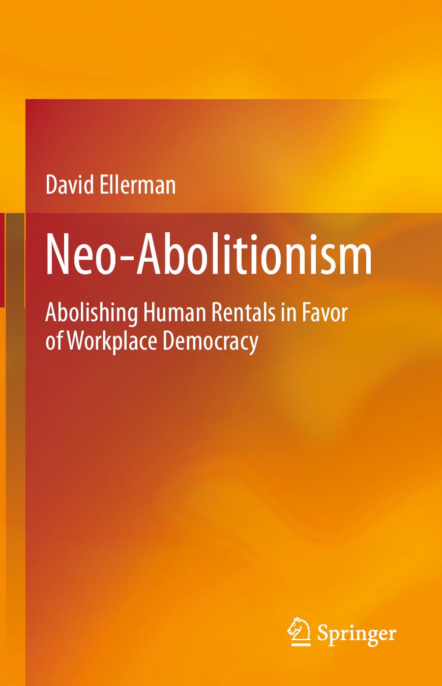 David Ellerman’s 2021 book Neo-Abolitionism lays out a fascinating critique of our society’s institutions. It’s not the critique that you’re used to, it’s well-argued, and it merits engagement.